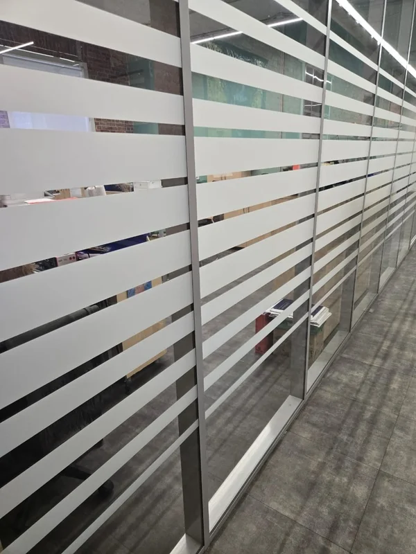 Декоративная матовая пленка — отличный выбор для оформления офисных пространств, повышения приватности и улучшения визуальной эстетики стеклянных перегородок.