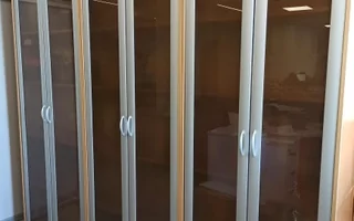 Предлагаем вам нашу новую работу по монтажу пленки MATTE WHITE. Работы проходили в офисе Типографии. Монтаж декоративной матовой пленки MATTE WHITE производился на стеклянные двери шкафов. Матовая декоративная пленка нанесена для того, чтобы не было видно книг и папок, находящихся внутри шкафа, и в то же время чтобы подчеркнуть дизайн стекла.