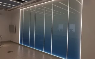 Очередной объект, выполненный нашей компанией «СОЛАР ГЛАСС». Работы по оклейке декоративной матовой пленкой с градиентным переходом проходили в офисе компании LOREAL. Матовая декоративная пленка с переходящим голубым градиентом придала офису компании необходимый элегантный акцент. Тонирование матовыми декоративными пленками с УФ-печатью градиентом пользуется огромным спросом в офисных помещениях. Заказывайте и мы украсим ваш офис своими пленками!