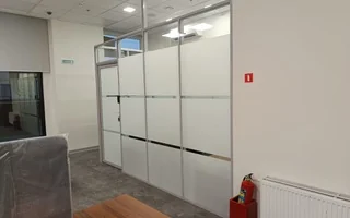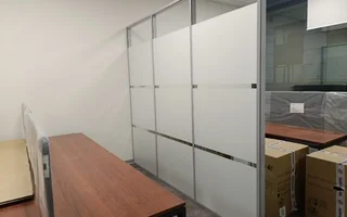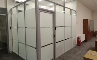 Пленка была смонтирована на стеклянные перегородки в кабинетах, а вырезанные по индивидуальному дизайну полосы добавили перегородкам стильный и современный вид.