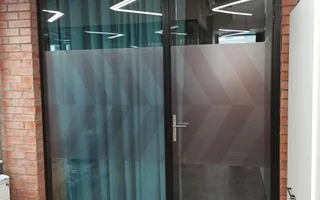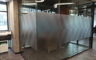 Еще один объект, который был закончен на этой неделе нашими монтажниками. Работы по установке пленки проходили в офисе одной строительной компании, монтаж декоративной полупрозрачной матовой пленки с интерьерной печатью производился на офисные стеклянные перегородки в кабинетах. Матовая полупрозрачная пленка с интерьерной печатью нанесена по задумке дизайнера для создания конфиденциальности в кабинетах, и в то же время чтобы стекла перегородок были красиво оформлены пленкой.