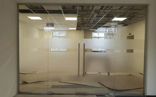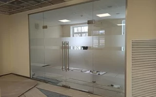 Еще один объект, который был закончен на этой неделе нашими монтажниками. Работы проходили на Шпалерной 45 в здании ФСБ, монтаж декоративной полупрозрачной матовой пленки производился на стеклянную перегородку в кабинете. Матовая полупрозрачная пленка нанесена полосами, по задумке дизайнера, для создания эффекта конфиденциальности в помещении и в то же время чтобы было красиво!