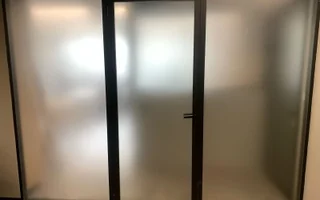 Компания «СОЛАР ГЛАСС» выполнила монтаж декоративной матовой полупрозрачной пленки MATTE PVC на стеклянную перегородку в офисе заказчика.