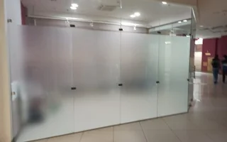 Предлагаем вашему вниманию еще один объект, который был закончен на этой неделе нашими монтажниками. Работы по установке пленки проходили в ТЦ «АФОНСКИЙ». Монтаж декоративной полупрозрачной матовой пленки ORACAL 641 производился на стеклянную перегородку в торговом помещении.