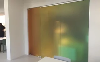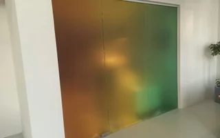 Предлагаем вашему вниманию еще один объект который был закончен на этой неделе нашими монтажниками. Работы по установке пленки проходили в новом кафе на Крестовском острове. Монтаж декоративной полупрозрачной матовой пленки ORAJET производился на стеклянную перегородку в помещении кафе. Пленка была придумана дизайнерами для создания эффекта 3D и с необычным переходящим градиентом.